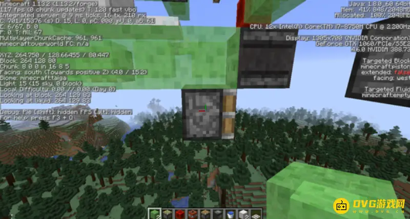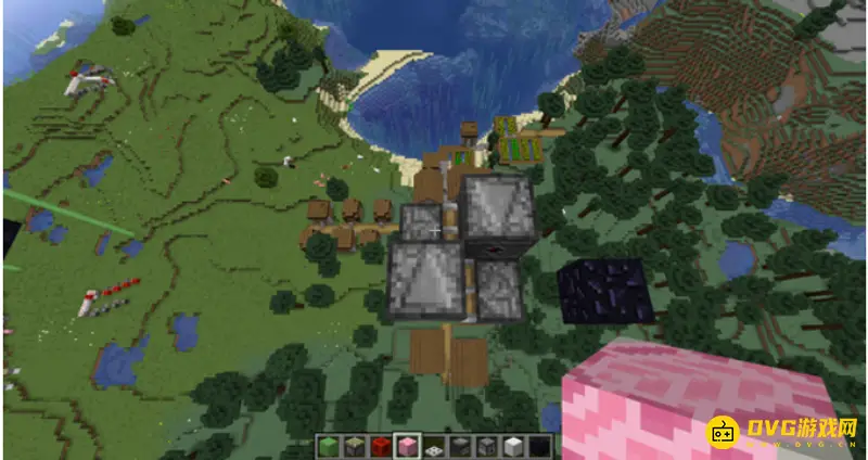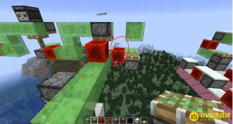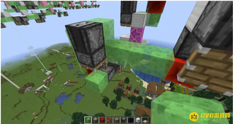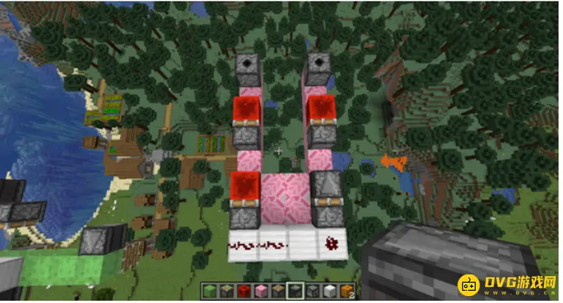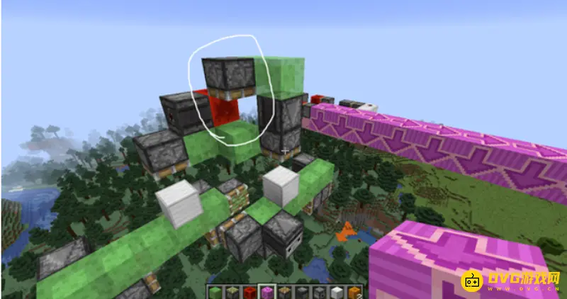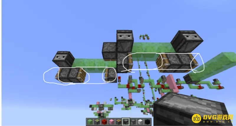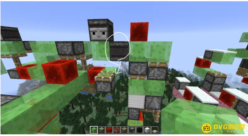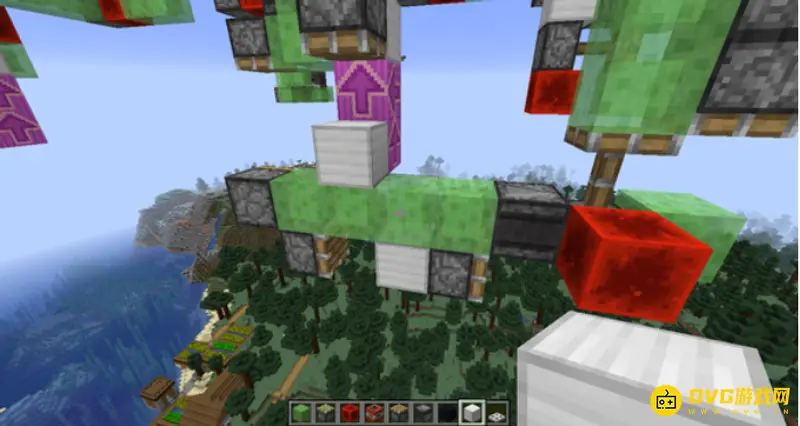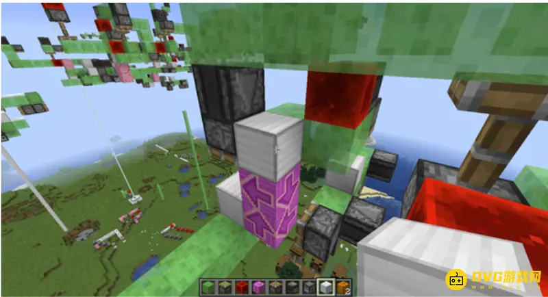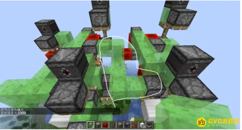 9、最右边的红石块连接主体框架,当它下移的时候,整体TNT轰炸机都会下移。至此世界吞噬者便完成了。