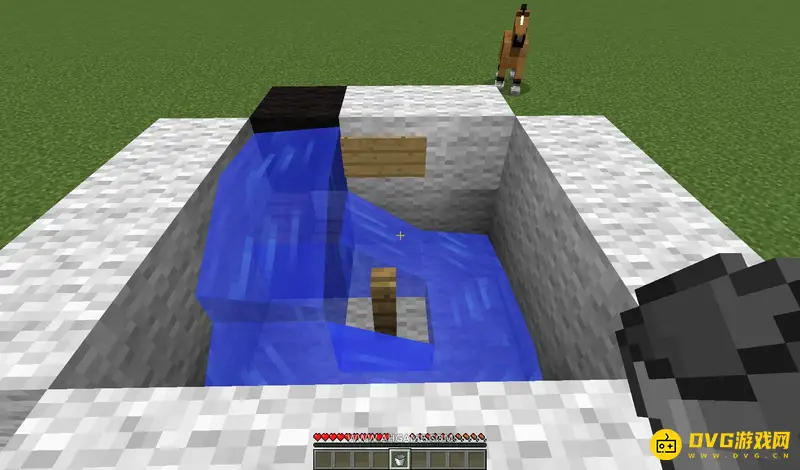 4、注意:一定要在黑色羊毛处放水!之后玩家跳进去就行了。