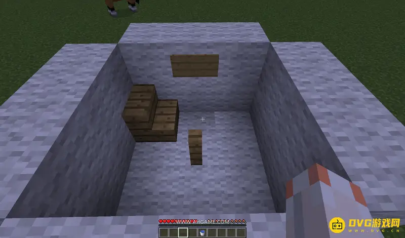 3、然后,像下图所示的那样搭好,使用挂机池时系统会默认玩家在游泳,所以玩家得开启和平模式或饱食度比较满,为了防止饿死。