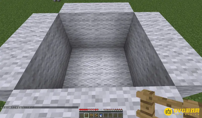 2、然后在要建挂机池的地方挖一个长为3,宽为3,高为2格的坑(边角的地方玩家可以选择填上)。