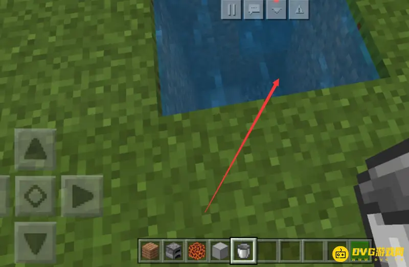 2.用铁桶直接点击水,即可成功装水,想要把水放出来,在地上点击一下即可把水再放出来。