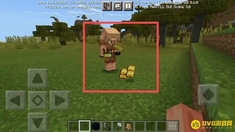 5、在猪灵面前点击金锭。