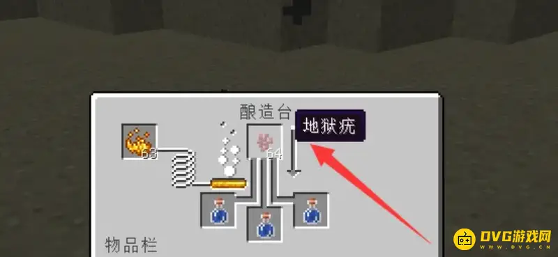 3.在上面放入地狱疣并等待酿造完成,如图所示。