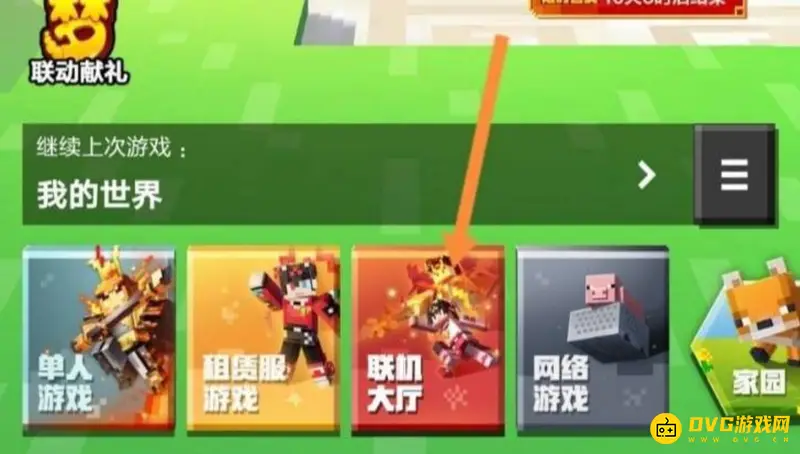 2.玩家进入游戏后,点击联机大厅,如下图所示。