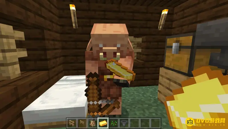 1,首先我们需要找到猪灵,然后扔出金锭给它,它会拿着金锭看几秒。