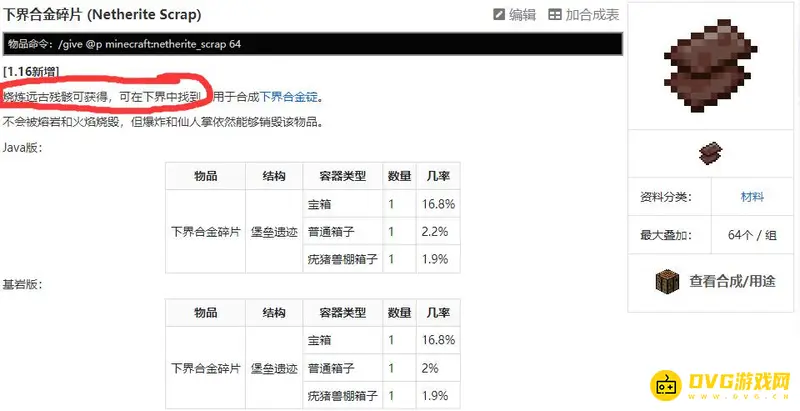 2,然后就可以发现下界合金碎片需要烧炼远古残骸可获得,而远古残骸可以在下界中找到。