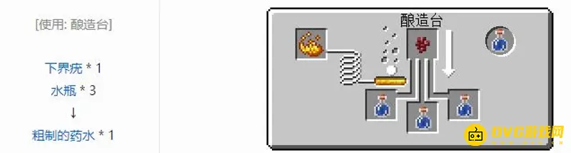 1,首先我们需要找到酿造台,然后使用三个水瓶和一个下界疣制造出粗制的药水。