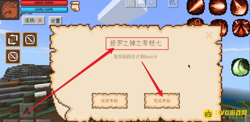 2、竞技场副本段位分数在5000分以上之后,在主界面点击左上角【任务图标】,找到修罗之神之考核七。