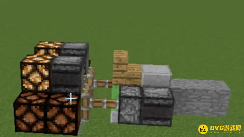 2.第2步:在活塞的右边放一个侦测器,侦测器的方向要对准活塞。
