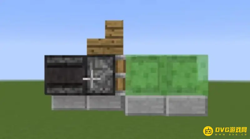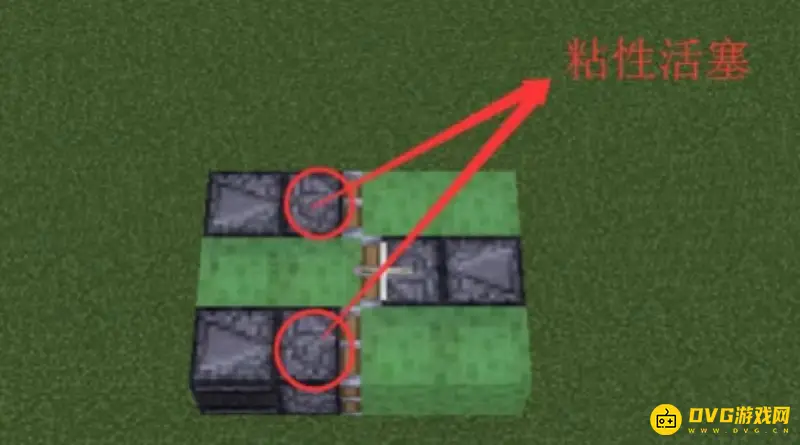 1.第1步:选择做飞机需要的高度,先摆放活塞,然后将两个粘液块放置在活塞的左边。