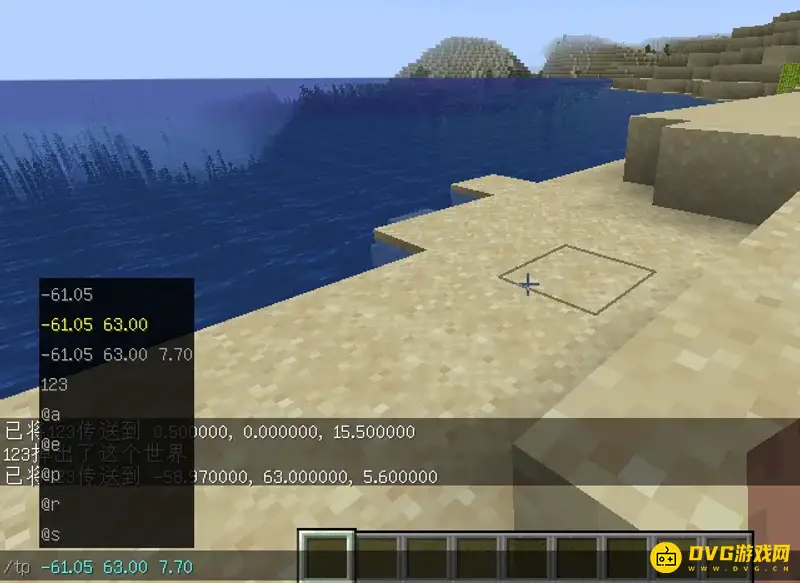 5、再者,如果是多人模式,请先输入要传送的对象,再输入坐标。输入坐标的时候,坐标顺序分别为xyz,y轴代表高度。
