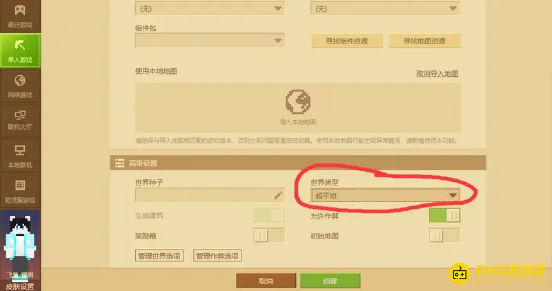 2,然后往下滑动,把世界类型改成超平坦即可。