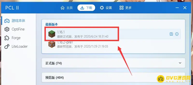 2.在启动器界面的上方,点击“下载”按钮,进入下载界面,接着,我们在下载界面中,需要选择与服务器版本相同的客户端版本,并点击进行下载。