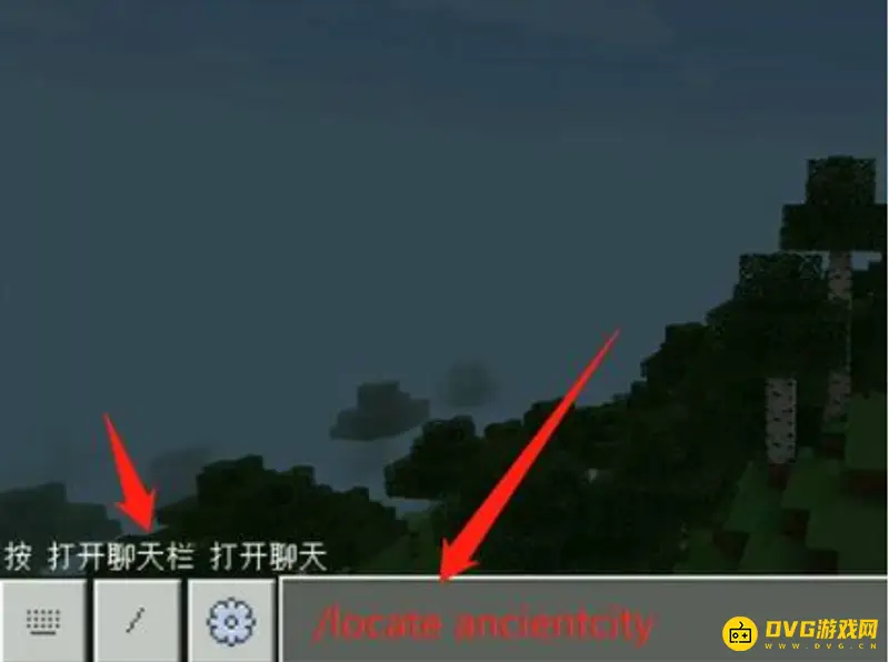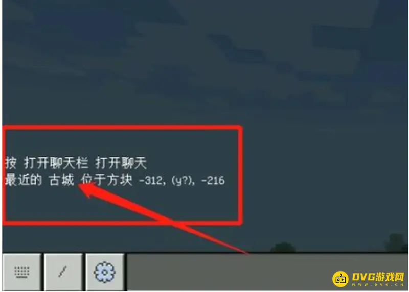 一、首先打开工具栏,然后点击聊天栏,输入古城地点指令“/locate ancientcity”,如下图所示;