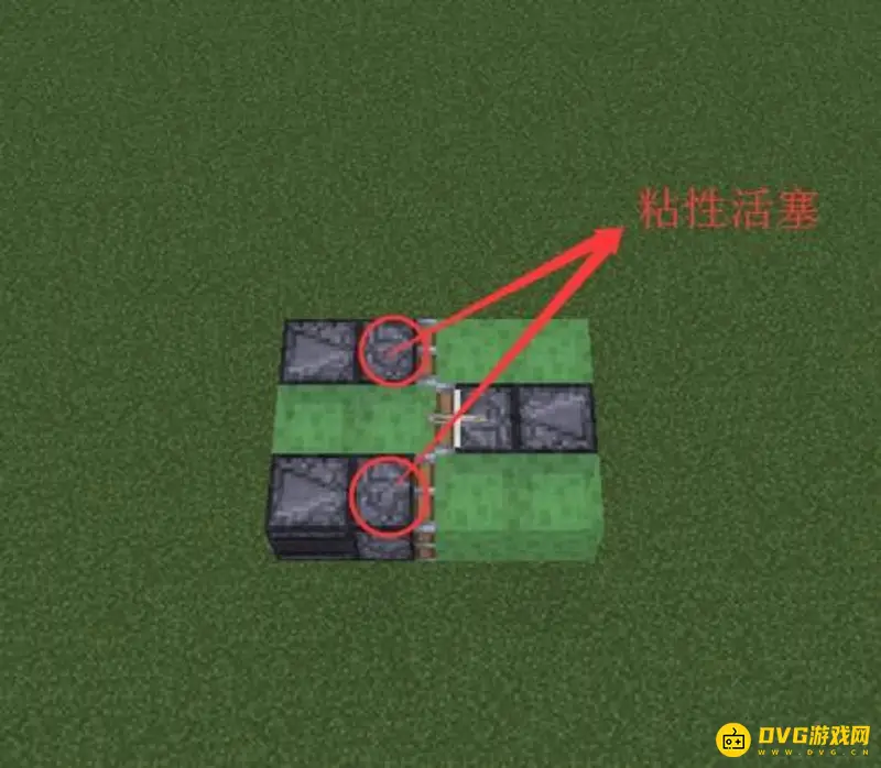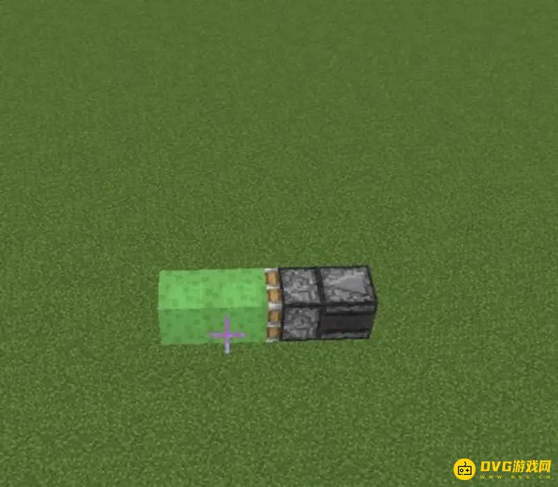 1、首先确定好高度后,放置一个活塞。活塞的前方放两个粘液块。