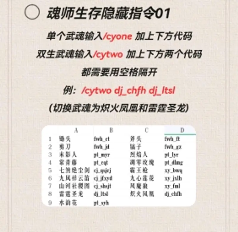 1、普通指令(主副武魂配置、年限数字等):