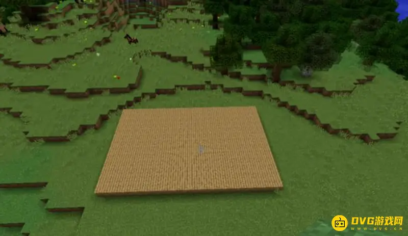 1、首先我们搭一个18×12的木板地基(注意:不是嵌在泥土里的,是放在泥土上面的。)