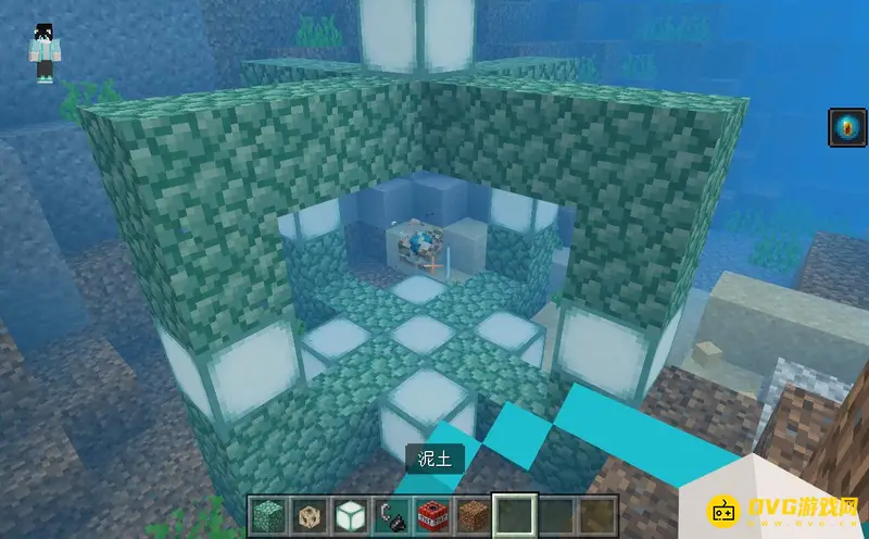 需要用海晶石和海晶灯围成一个7乘7的形状,然后在中间放上潮涌之心即可。