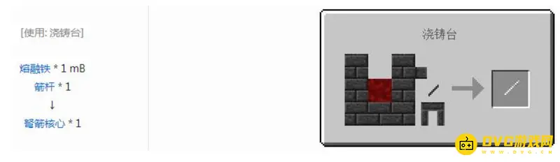 弩箭核心是制作弩箭的部件之一。制作弩箭核心玩家需要先做一个箭杆,之后将箭杆放到浇筑台上使用金属(金属只能是熔铁)进行浇筑,完成之后就是弩箭核心了。