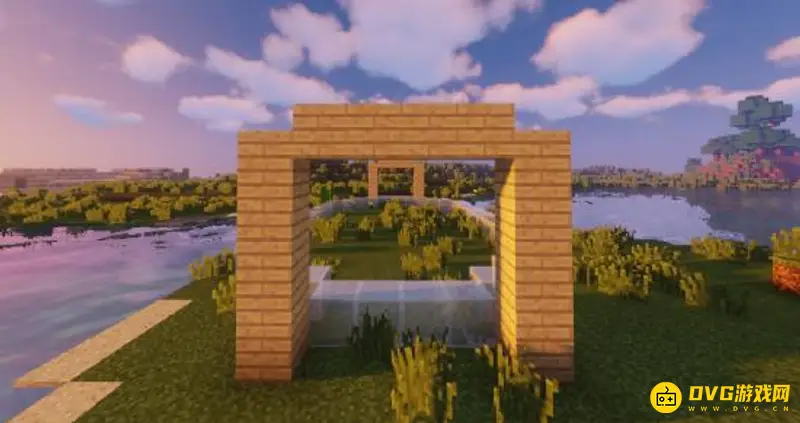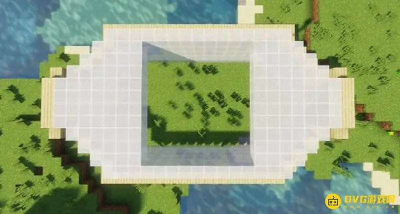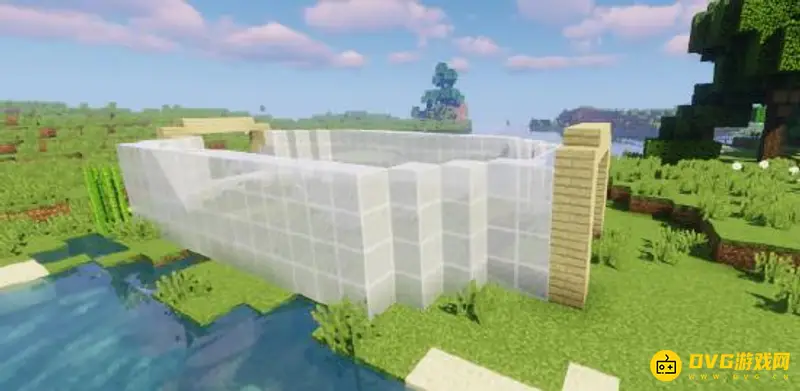 1、首先,选一个风景不错的地方,用白色染色玻璃构建出如下的框架