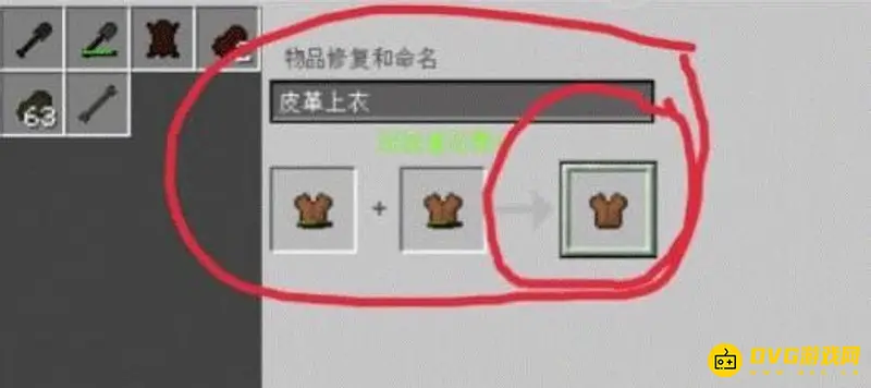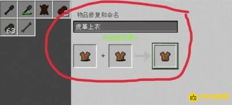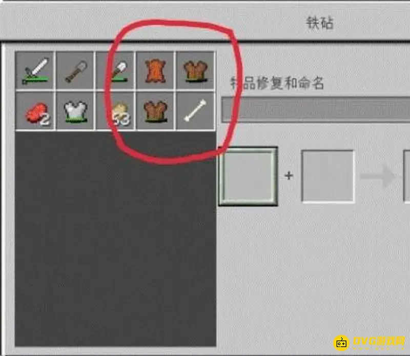 3、点击铁砧进入修理界面之后,选择损坏的装备(以两件损坏的皮革上衣为例)。
