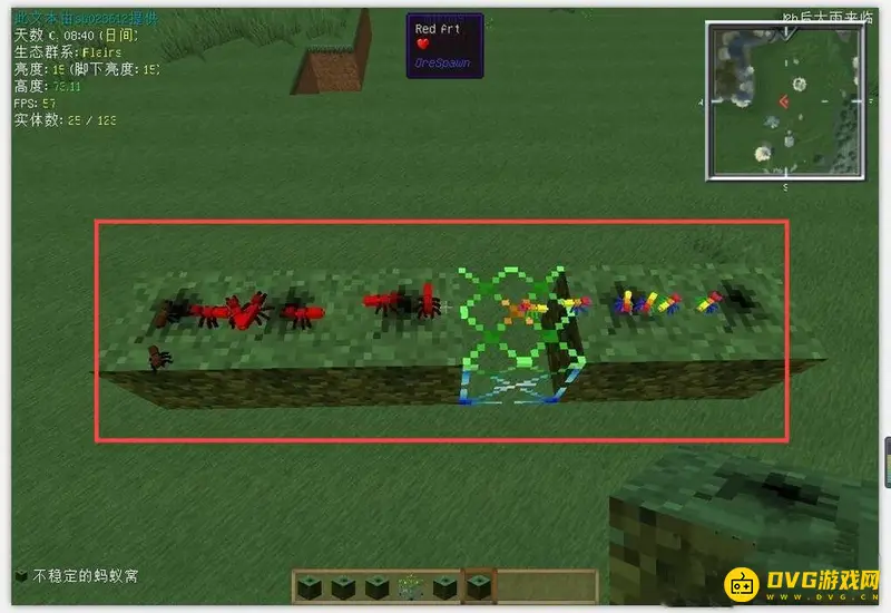 3、空手对想要去的相应的蚂蚁右键,建议去的时候自己身上携带同种蚂蚁窝,因为在蚂蚁世界也是以这样相同的方式回主世界。这样即可成功引蚂蚁了。
