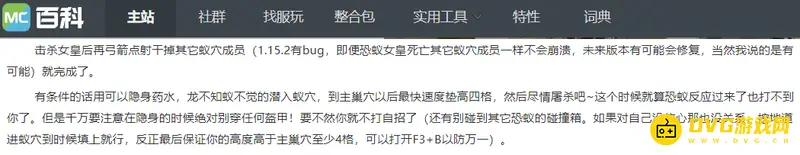 击杀女皇后再弓箭点射干掉其它蚁穴成员(1.15.2有bug,即便恐蚁女皇死亡其它蚁穴成员一样不会崩溃,未来版本有可能会修复,当然我说的是有可能)就完成了。