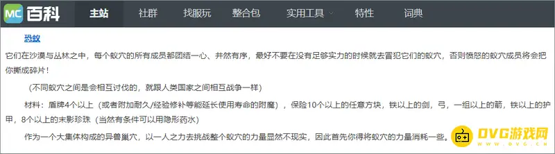 恐蚁在沙漠与丛林之中,每个蚁穴的所有成员都团结一心、井然有序,最好不要在没有足够实力的时候就去冒犯它们的蚁穴,否则愤怒的蚁穴成员将会把你撕成碎片!(不同蚁穴之间是会相互讨伐的,就跟人类国家之间相互战争一样。)