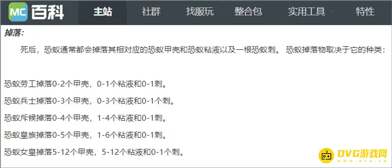 恐蚁斥候掉落0-4个甲壳,1-4个粘液和0-1刺。