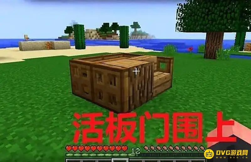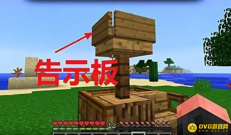 3、底层围好之后我们就要建造一个爬上爬下的小台子了,我们用一个栅栏加一个木台阶就可以搭建出一个很NICE的小平台,然后用告示板围上一圈,不要在上面写字,这样看起来就又是一个凹型的小区域了,都是小猫最喜欢的。