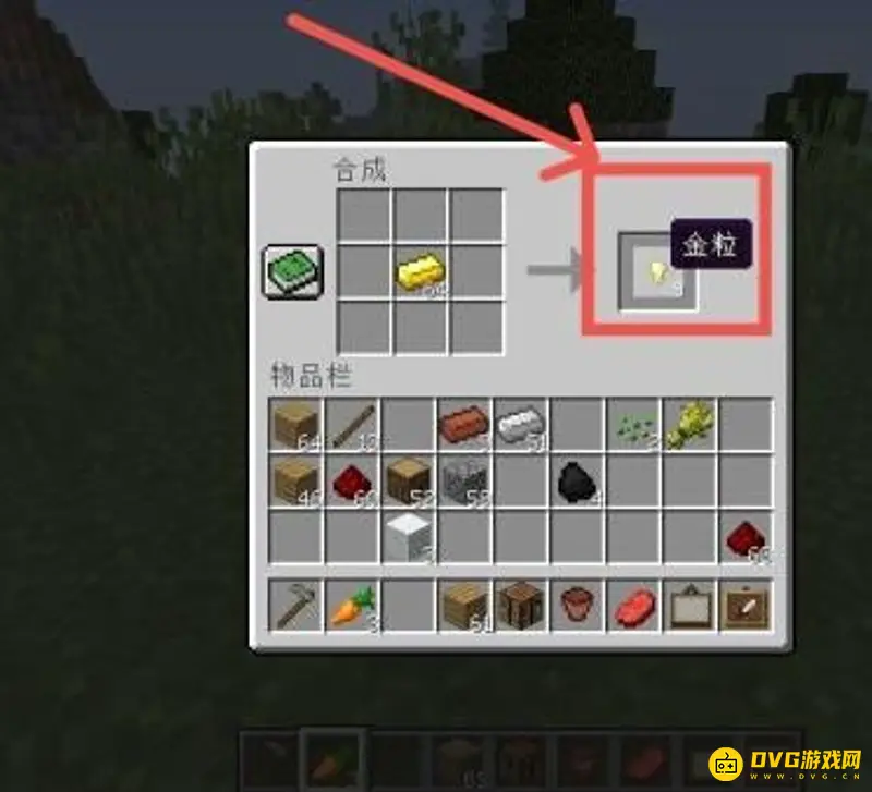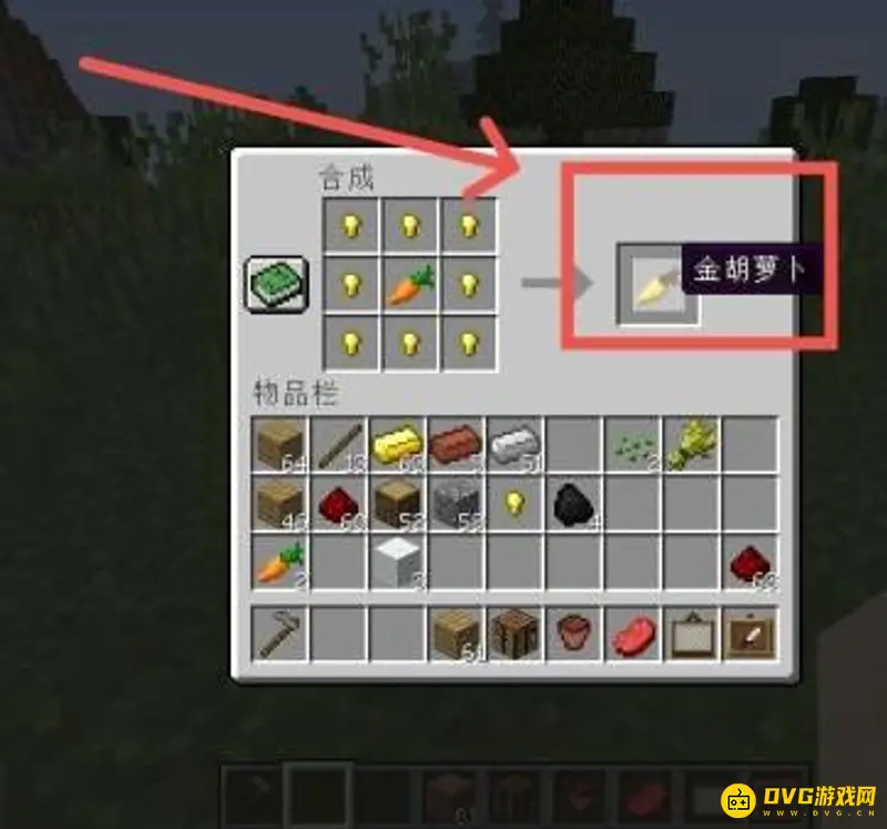 5、将胡萝卜放在中央,周围放上金粒,就可以获得一个金胡萝卜啦。