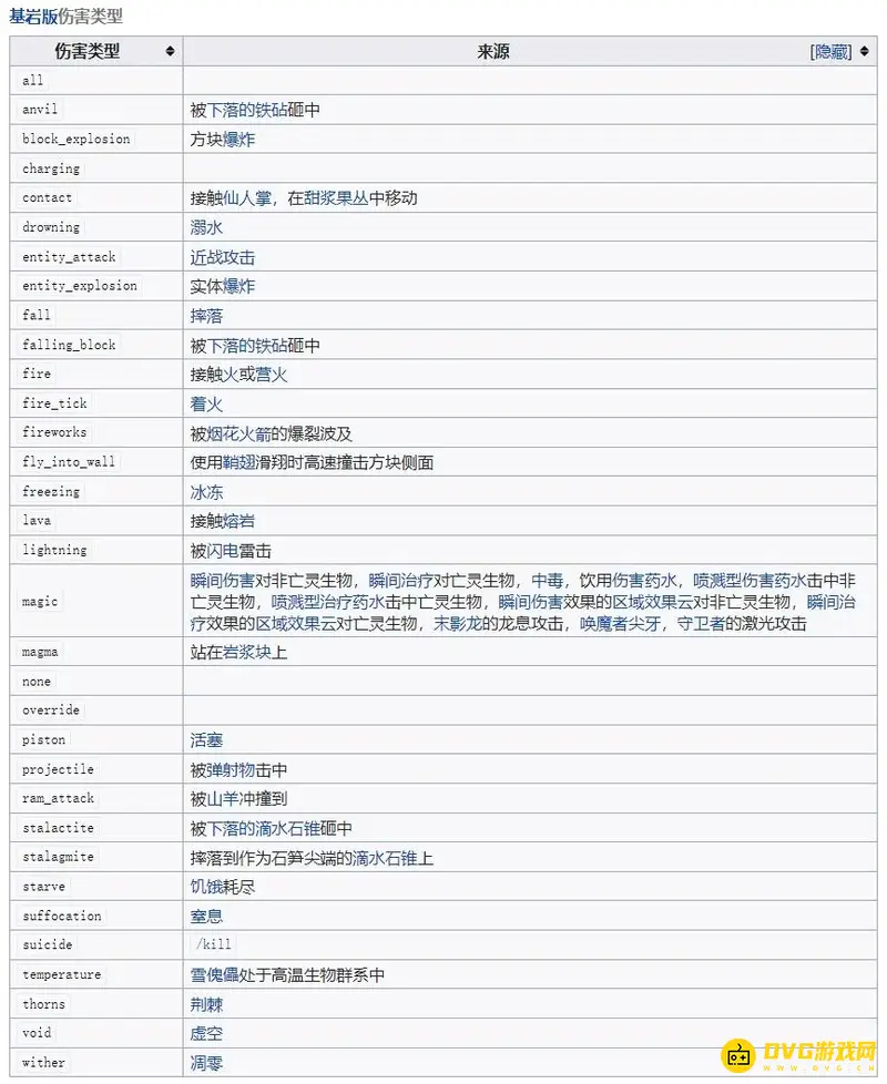 在Java版我的世界中,damage指令的伤害类型共有62种,包括但不限于:箭、仙人掌、实体、溺水、脱水、爆炸、摔落等类型。在基岩版我的世界中,damage指令的伤害类型共有33种,包括但不限于:被下落的铁砧砸中、方块爆炸、接触仙人掌、在甜浆果丛中移动、溺水、近战攻击等类型。