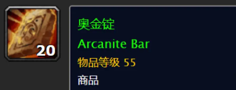 奥金锭*10:出处:奥金锭由炼金师通过转化将一块瑟银锭和一块奥术水晶转化成一块奥金锭,技能CD为2天。