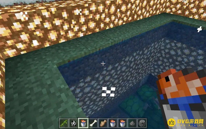 2,然后就可以成功把热带鱼养在水里了,玩家还可以给水做一个封顶,防止鱼跳出去。