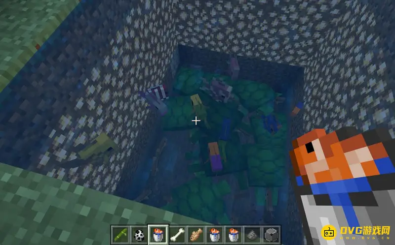 1,首先我们可以拿着热带鱼桶,右键点击水面。