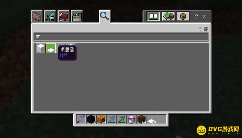 1,首先我们进入游戏,打开创造模式,拿取顶层雪。
