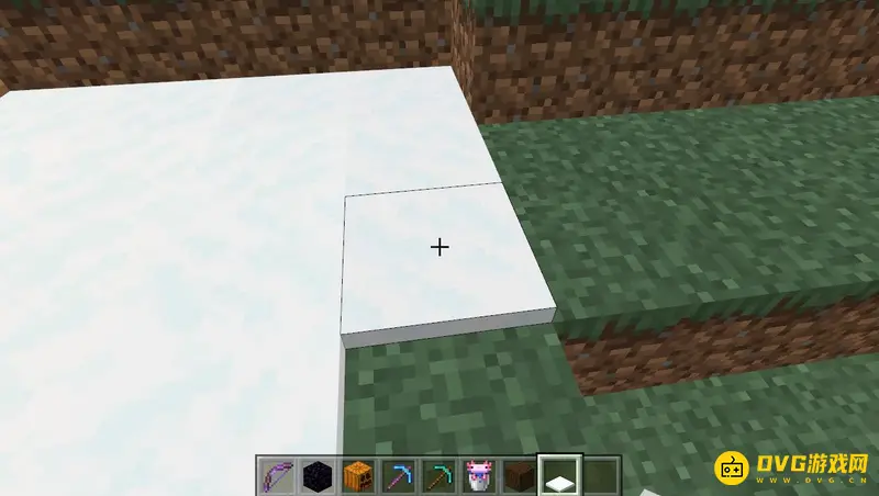 2,接着我们拿着雪对着草地按鼠标右键,就可以把草地用雪覆盖起来了,也就是变成雪地了。