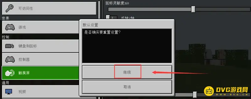 5.点击继续按钮即可恢复触摸屏的默认设置,如图所示。