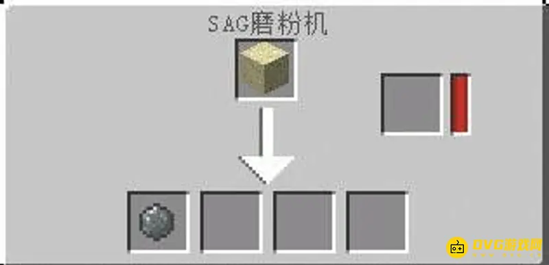4、最后就是合成磨粉机了,三个燧石 四个铁锭 一个机器框架 一个基础电容,磨粉机的速度与物品的大小有关,例如粉碎沙子会比石头快。