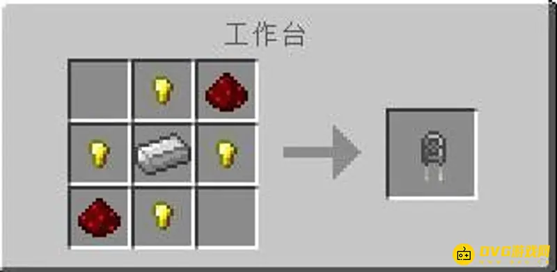 2、要合成磨粉机,我们要先合成出基础电容,方法不难,两个红石 四个金粒 一个铜锭或铁锭即可,这里我们需要合成两个基础电容.