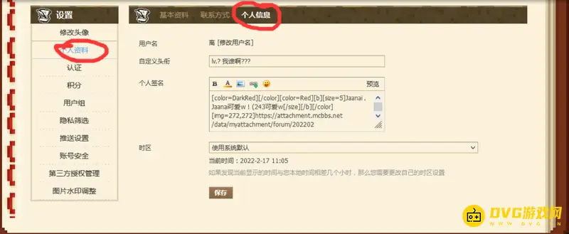 2、点击个人信息中的个人资料,就有自定义头衔,这里就可以设置。