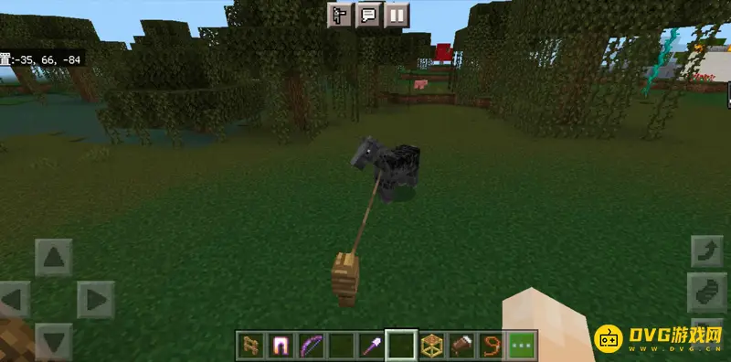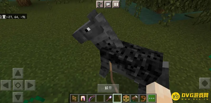 4、然后把栓绳的另一头安装在木制栅栏上,这里就显示成功把马拴住了。