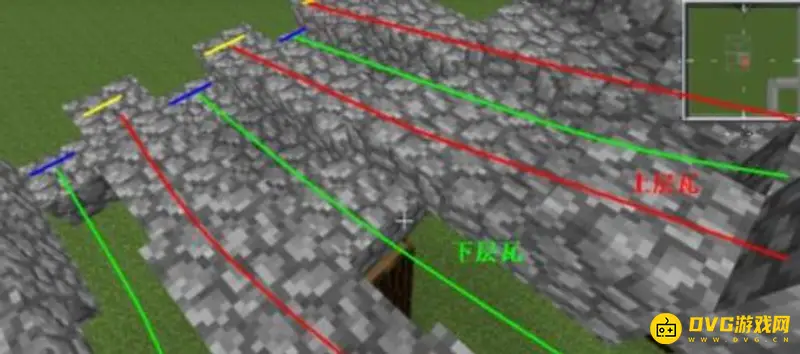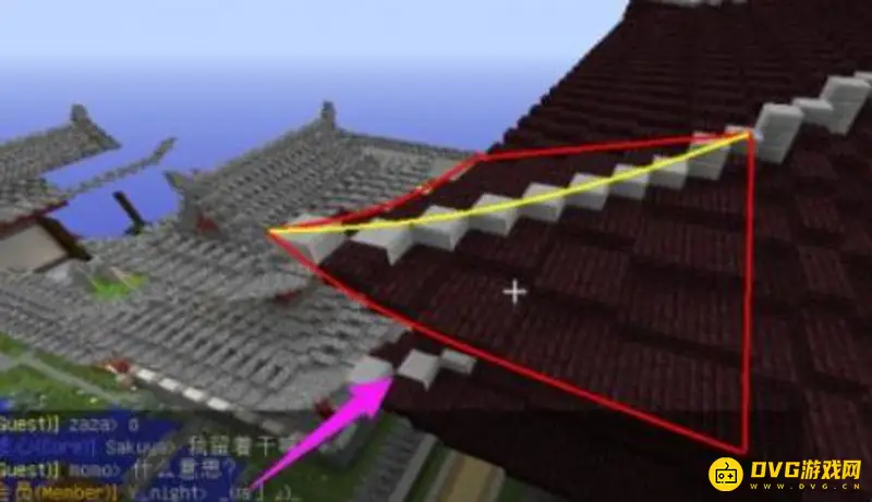 2、紧接着我们搭建顶部 两遍的内凹屋顶,如图。