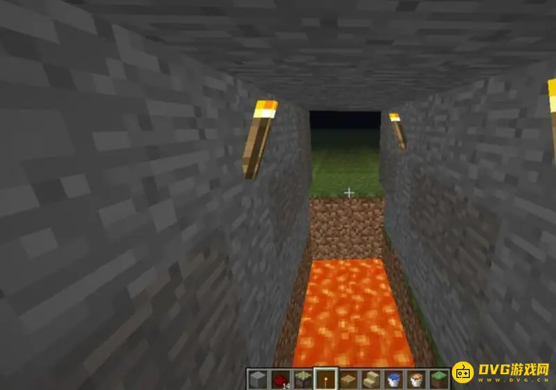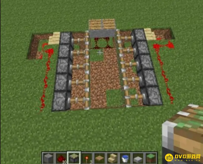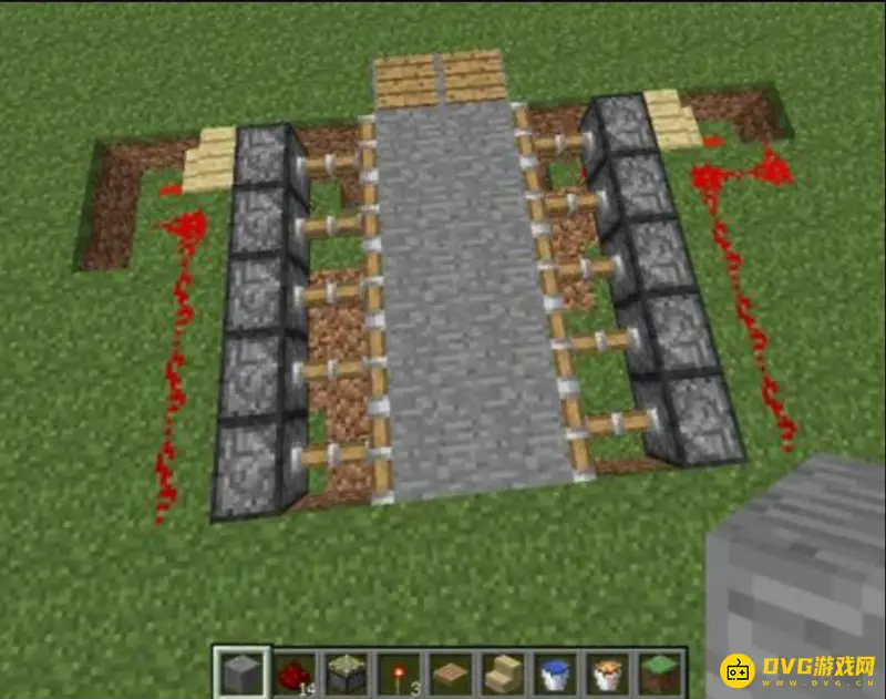 6、最后将线路用石头围好,红石陷阱就做好了。