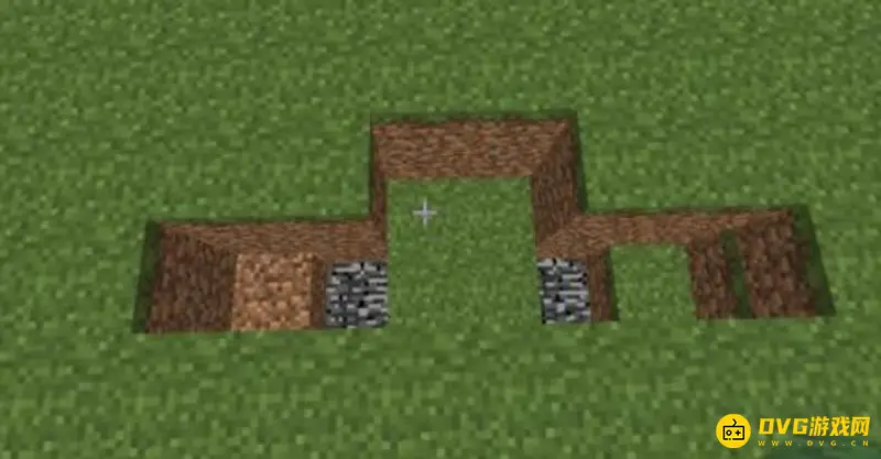 1、首先,挖一个三格深度的坑,呈现一个“凸”字型。