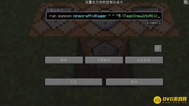 3.在控制台命令里输入run summon mineoraftvillager^^5(Tags:[new],NoAI:1)代码,之后选择完成