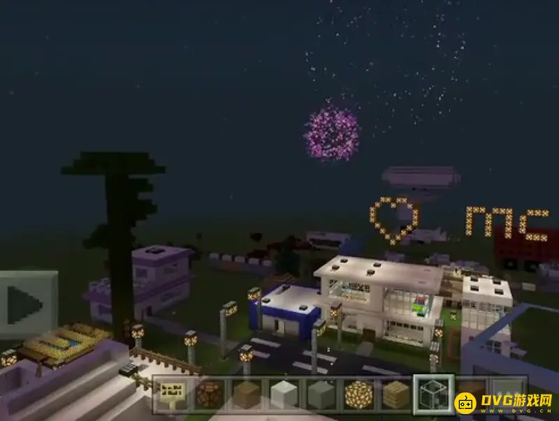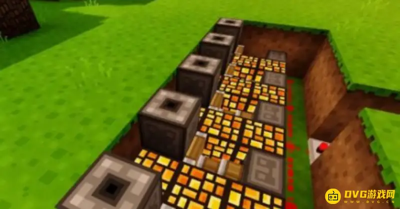 10、最后,自动烟花装置就制作完成了,然后将红石线路用草方格隐藏起来,看起来会美观一些。