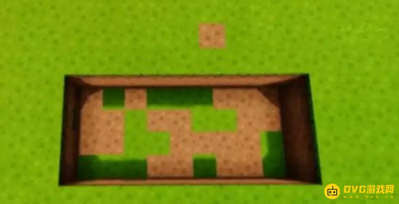 2、然后在这块地上挖出宽9个方块,长4个方块,深2个方块的凹槽。