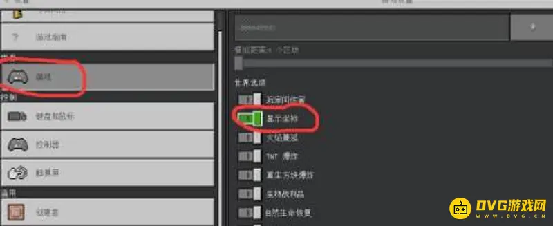 2.然后点击左侧的游戏,在右侧找到显示坐标,把显示坐标关闭,然后退出设置,就可以看见在左上角已经不显示坐标了。