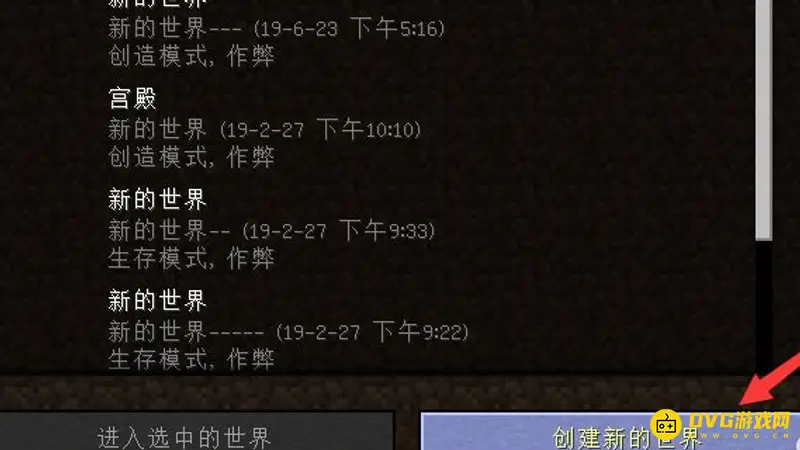 2.然后在右下角选择创建新的世界。